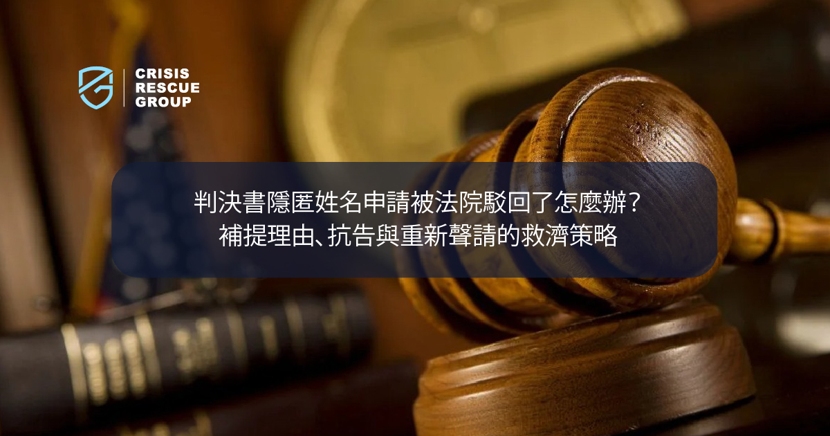 判決書隱匿姓名申請被法院駁回了怎麼辦?補提理由、抗告與重新聲請的救濟策略全攻略
