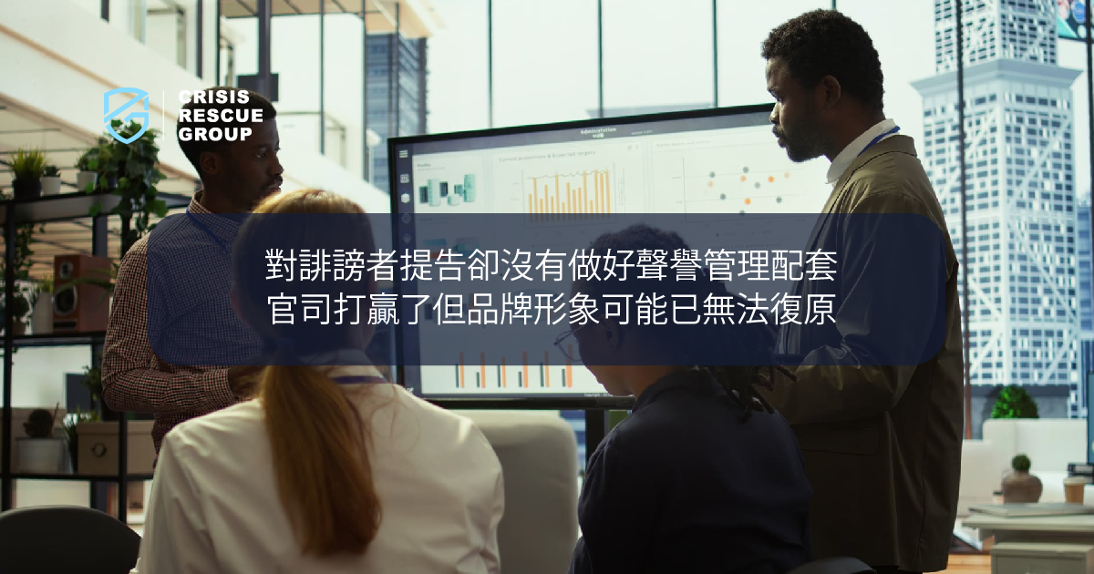 對誹謗者提告卻沒有做好聲譽管理配套,官司打贏了但品牌形象可能已無法復原